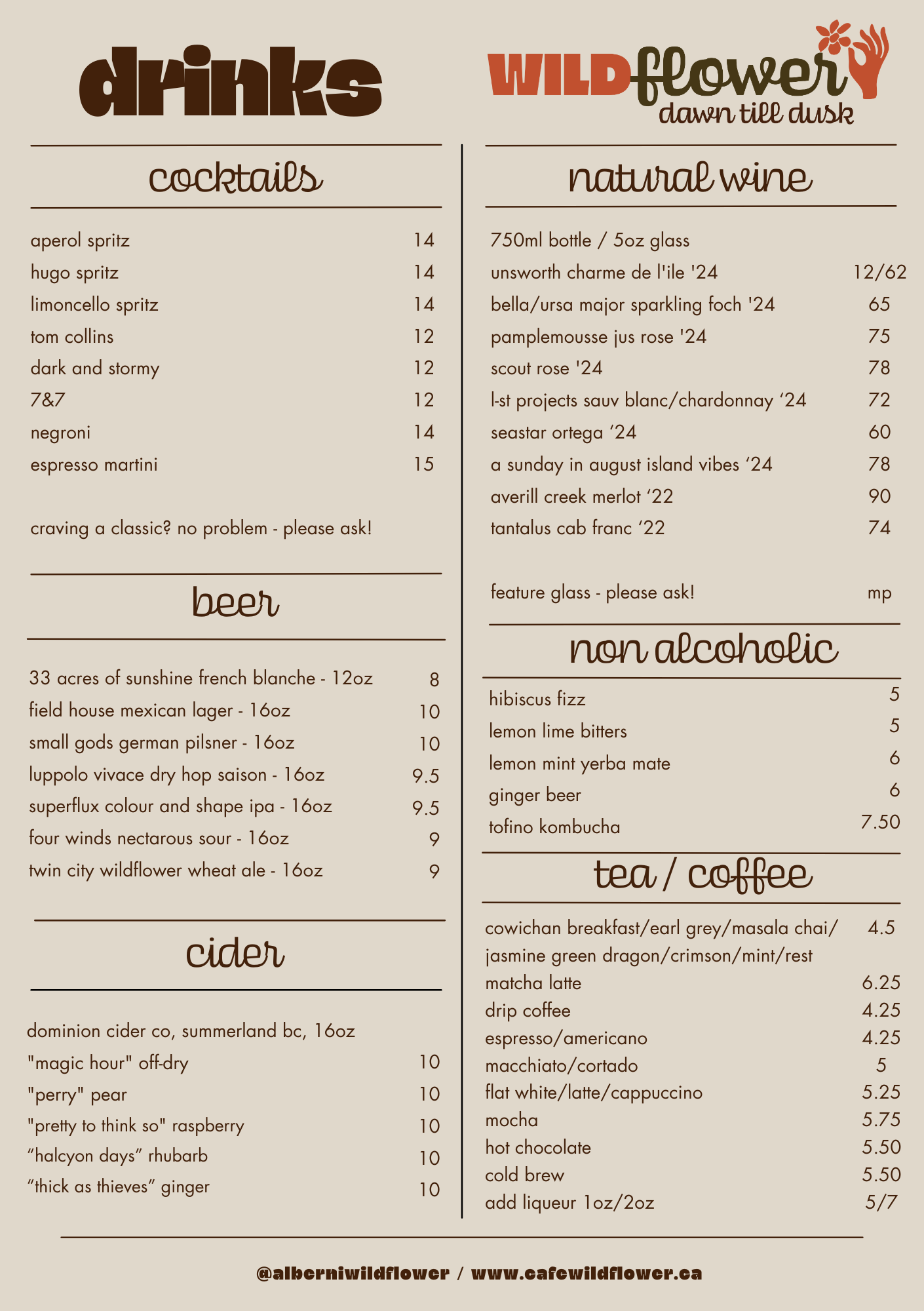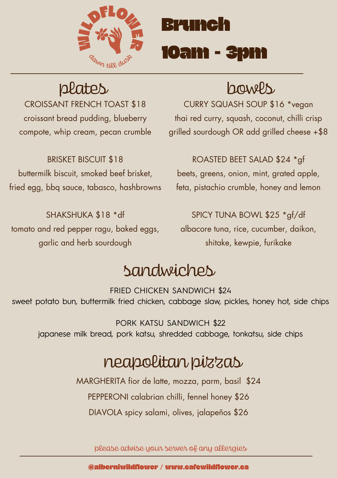 All of our dishes are composed entirely from scratch, in house, and with love and dedication to our craft. We strive to source organic and seasonal ingredients from local farmers, producers, and suppliers, as well as from our own garden. Many of our dishes are easily modified to accommodate gluten free, dairy free, and vegan diets. Please advise your server of any allergies. Please note that some menu items or ingredients are subject to change due to availability.